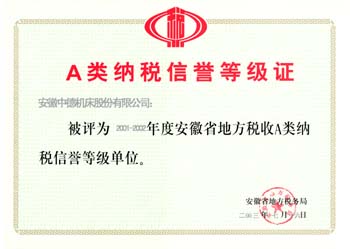 根據(jù)《安徽省地稅系統(tǒng)納稅信譽等級管理試行辦法》(皖地稅[200]66號)等有關(guān)規(guī)定,稅務部門按照納稅人申請、主管地稅機關(guān)對納稅人2001年、2002年及2003年稅務登記、納稅申報、稅款繳納、財務管理、納稅資料報送、發(fā)票管理等方面的嚴格審核,安徽中德機床股份有限公司被評為:2001—2002年度安徽省地方稅收A類納稅信譽等級單位!
