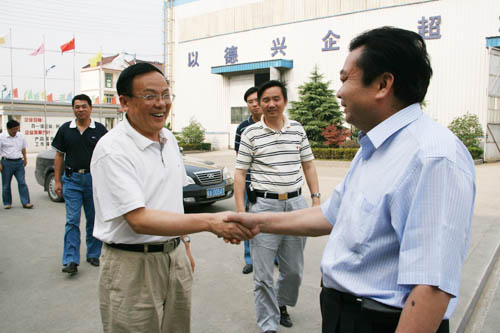 在鄭長玉董事長的陪同下,吳副書記等一行參觀了生產(chǎn)車間和成品車間并在公司會議室進(jìn)行了座談。在了解了我公司的發(fā)展歷程、生產(chǎn)銷售、人才培養(yǎng)等情況后,吳副書記等人對公司近年來所取得的經(jīng)營成績給予充分肯定。他指出,工業(yè)是民族經(jīng)濟(jì)的支柱,尤其是機(jī)械設(shè)備工業(yè)是基礎(chǔ)中的基礎(chǔ)。在競爭日趨激烈的市場環(huán)境下,企業(yè)競爭力的提升關(guān)鍵要是靠人才的培養(yǎng),關(guān)鍵是要靠科技創(chuàng)新能力的提升和不斷完善的服務(wù)體系。同時吳副書記還指出,企業(yè)要發(fā)展必須實(shí)施“走出去”戰(zhàn)略,參與國際經(jīng)濟(jì)競爭與合作,努力開拓國際市場,提高國際市場占有率,在國際分工與合作中取得有利地位。