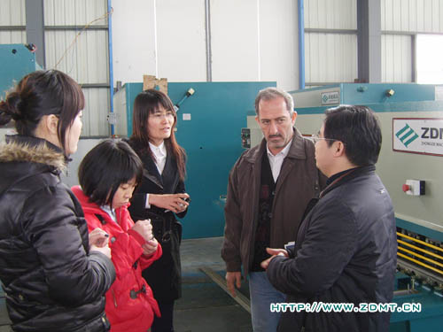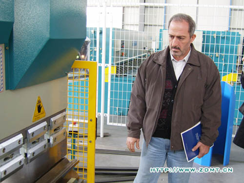 Haiyl A.AI Rawy先生對(duì)中國(guó)機(jī)械行業(yè)尤其是剪板機(jī)折彎?rùn)C(jī)非常的熟悉,他表示他們非常重視機(jī)器的質(zhì)量,來(lái)中德也是由于中德機(jī)器在海內(nèi)外都享有良好的聲譽(yù)。參觀前,Haiyl A.AI Rawy還特意詢問(wèn)我們?cè)诎⒙?lián)酋有沒(méi)有代理,當(dāng)公司領(lǐng)導(dǎo)回答說(shuō)目前還沒(méi)有時(shí),他釋然一笑,表示希望能夠與中德建立良好的合作關(guān)系。在中德的成品車(chē)間,Haiyl A.AI Rawy先生聽(tīng)取了我公司營(yíng)狀況及近遠(yuǎn)期規(guī)劃的介紹,并就每一款機(jī)床的詳細(xì)情況進(jìn)行了介紹,重點(diǎn)詢問(wèn)了其性能及售價(jià)等。他對(duì)我們的數(shù)控折彎?rùn)C(jī)尤其感興趣,要求當(dāng)場(chǎng)進(jìn)行測(cè)試。Haiyl A.AI Rawy特意讓自己的助理拍下了整個(gè)操作過(guò)程,在我公司工程師的幫助下,Haiyl A.AI Rawy還進(jìn)一步了解了折彎?rùn)C(jī)數(shù)控系統(tǒng)的編程方面的問(wèn)題。