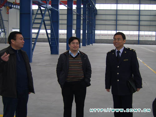 在公司相關(guān)領(lǐng)導(dǎo)的陪同下,出入境檢驗檢疫局一行來到中德成品車間。在這里,中德的產(chǎn)品一行行整齊地擺列著,儼然是整裝待發(fā)的士兵。當(dāng)程光前一行聽說這些機器即將被運往世界各地時,他們表示感到非常的高興,為中德的產(chǎn)品能夠取得這樣的成績而欣慰。在新建成的裝配車間,局長程光前等認(rèn)真聽取了我司對于出口現(xiàn)狀及前景規(guī)劃的介紹,對我司出口工作做出了充分的肯定。