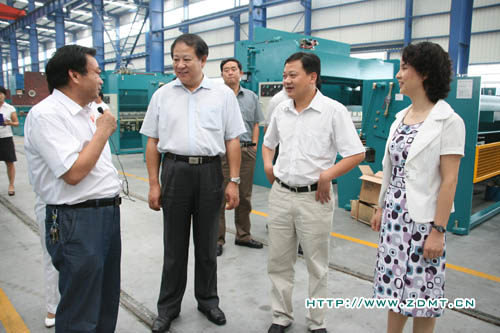 公司董事長鄭長玉向領(lǐng)導(dǎo)一行匯報(bào)了中德的發(fā)展歷程及目前的發(fā)展?fàn)顩r。重點(diǎn)介紹了我公司在車間管理和質(zhì)量監(jiān)督體制方面的完善工作,并從目前的發(fā)展局勢展望更好的發(fā)展前景。王司長也關(guān)切地向公司領(lǐng)導(dǎo)了解一些機(jī)器方面的情況,在聽到鄭董事長匯報(bào)說中德不會因目前的成績而有絲毫懈怠時(shí),王司長滿意的點(diǎn)了點(diǎn)頭。參觀過大型裝配車間后,領(lǐng)導(dǎo)一行來到了成品車間,擺放在這里的一臺雙機(jī)聯(lián)動(dòng)數(shù)控折彎機(jī)迅速地吸引了大家的眼球,鄭董事長向領(lǐng)導(dǎo)介紹說這臺機(jī)器已經(jīng)經(jīng)過商檢并即將發(fā)往波蘭并非常自豪地說這位波蘭客商正是看中了中德的實(shí)力才會放心的與我們合作。隨后公司總經(jīng)理鄭小平向領(lǐng)導(dǎo)介紹了目前中德的國外代理點(diǎn)及國外銷售情況,表示中德還有非常大的外貿(mào)發(fā)展空間。