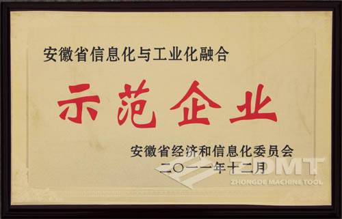 中德機(jī)床獲安徽省“信息化與工業(yè)化融合示范企業(yè)”稱號(hào)